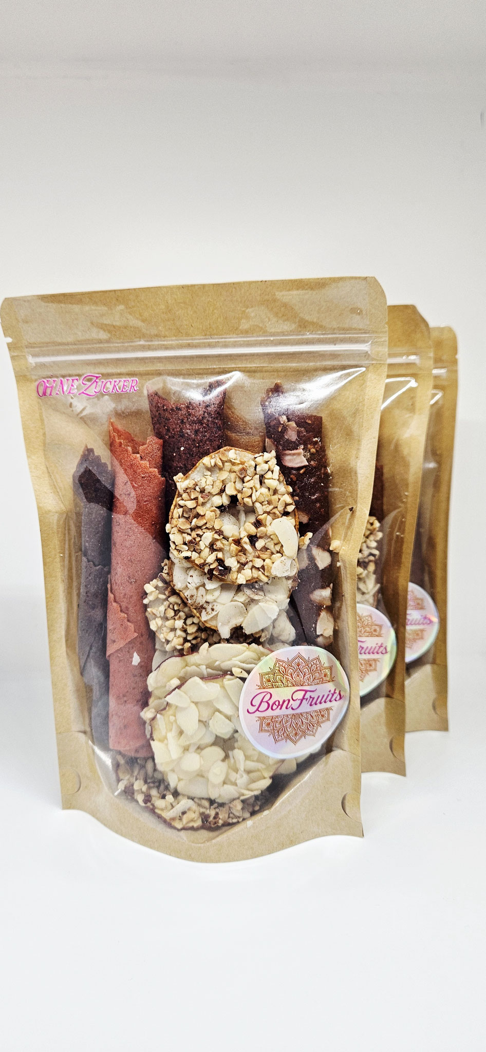 Die Marke BonFruits bietet zuckerfreie Süßigkeiten: eine große Auswahl an Frucht- , Beere- und Gemüsepastila. Bonbons aus Frucht-, Beeren- und Joghurtpastila sowie getrocknete Äpfel und Birnen mit Honig und Nüssen. Außerdem gibt es Schokoladenaufstriche aus original belgischer Schokolade in sieben Geschmacksrichtungen, ohne Konservierungsstoffe und Geschmacksverstärker.