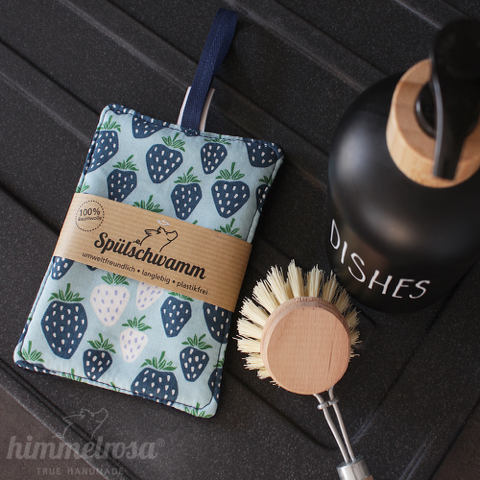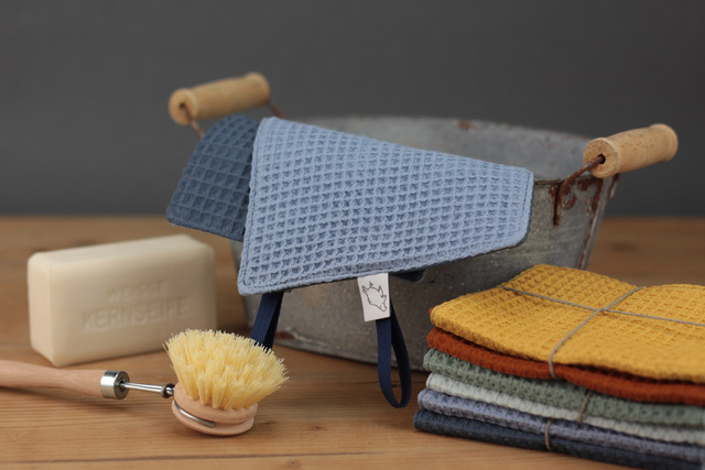 Ihre innen beschichteten Abdeckhauben für Schüsseln und die waschbaren Spültücher und -schwämme aus 100% Baumwolle helfen dabei, Müll zu vermeiden und die Umwelt zu schonen. Bei der Herstellung achtet die Berlinerin besonders auf eine sorgfältige Verarbeitung und die Auswahl hochwertiger Materialien.